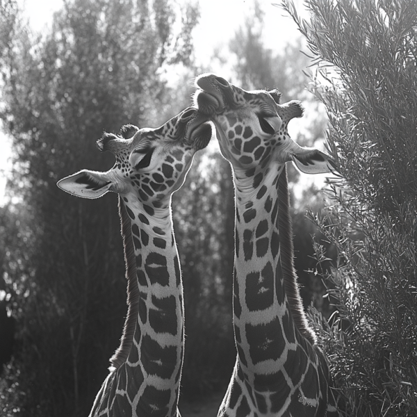 Imagen en blanco y negro de dos jirafas jugando_ATAI