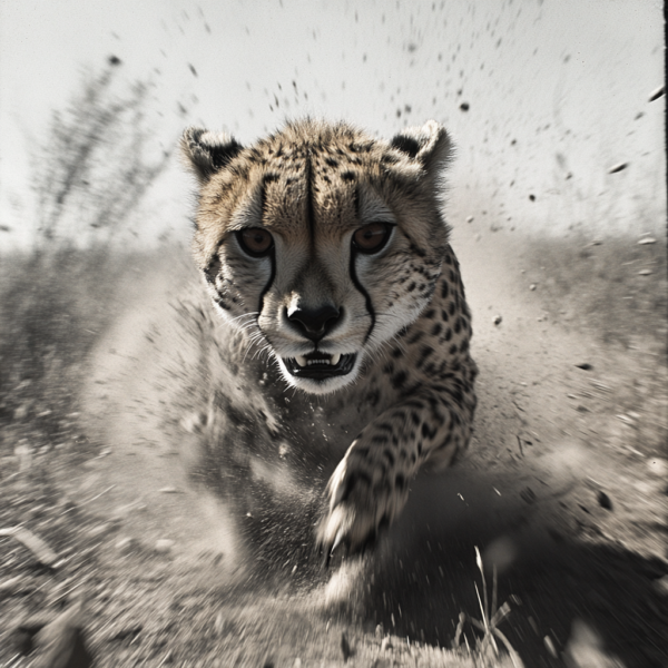Acción en blanco y negro de un guepardo corriendo_ATAI