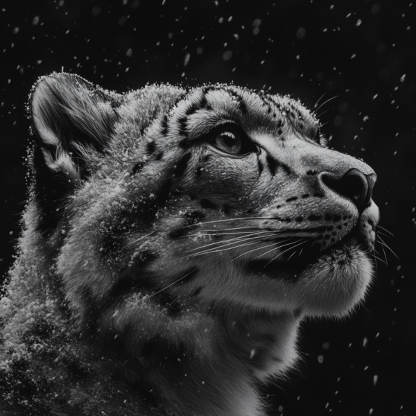 Retrato en blanco y negro de un leopardo de las nieves_ATAI